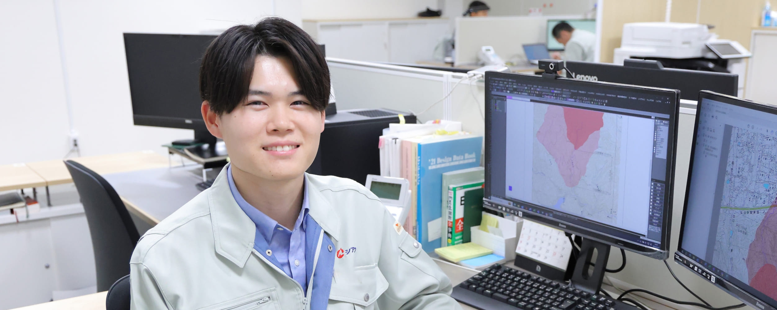 新設の場合は上流側の業務である調査・計画の段階から携わり、基本設計を経て実施設計を仕上げ、設計図書をお客様に納品するまでの全工程に関わります。お客様は官公庁が大半で、各種申請手続きなどの事務業務もあります。