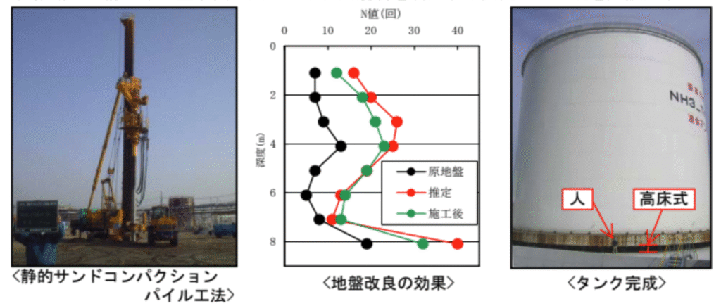 本件工法の地盤改良は、近年、他のタンク基礎においても良好な改良効果を得ています。