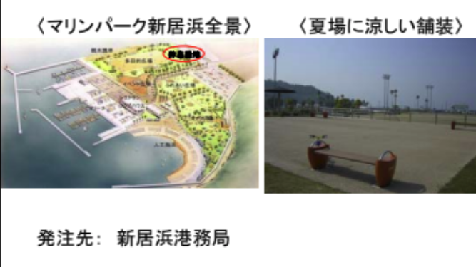 『マリンパーク新居浜における夏場に涼しい舗装設計』