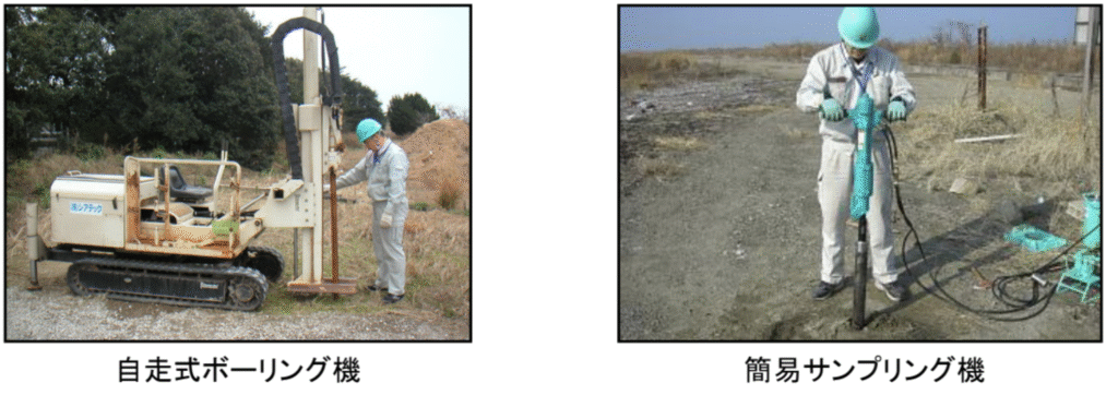 | 調査機器 | 自走式ボーリング機 | 簡易サンプリング機 |