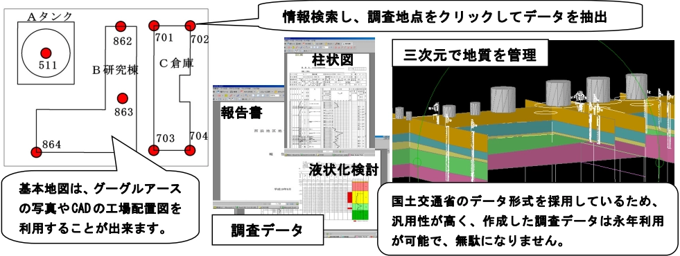 本システムは地質データを有効に活用できるシステムであり、次にあげるメリットを有しています。