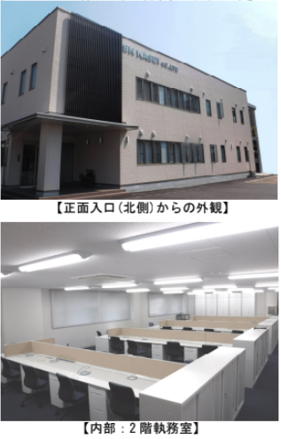 同社第一工場西側に隣接して建設され、操業との連絡、調整等のオフィスワークが向上。又、来客者は建家北側、従業員や関係業者は西側や南側から利用できるよう動線を明確に分けました。