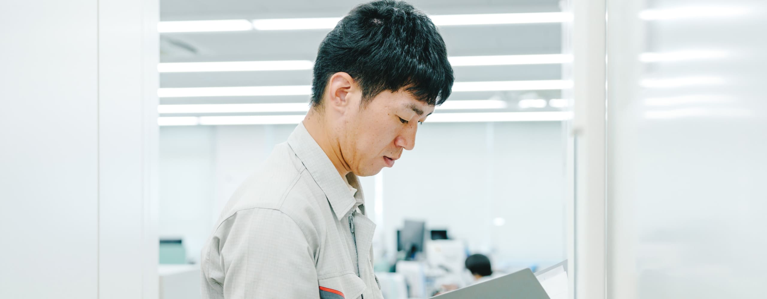 朝イチの20分間の仕事は、その日工場に入る施工会社担当者との打ち合わせと決まっている。工事内容、一日の流れなどを短時間にテンポよくすり合わせていく。