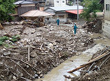 当社は、地域建設コンサルタント会社としての社会的責任を果たすべく、発災直後からいち早く被災状況等の調査、測量を行うとともに、道路や河川、砂防の各分野において本復旧のための設計業務に取り組んでいます。